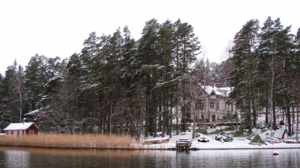 Lounaisrannalla häämöttää Sunnanvikin kartanomainen huvila.