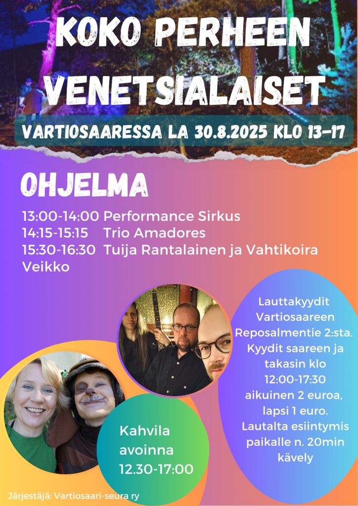 Uncategorized Venetsialaiset 2025! Posted by Tapani Parviainen on 11.8.202511.8.2025 Tervetuloa Venetsialaisiin lauantaina 30.8. klo 13-17!